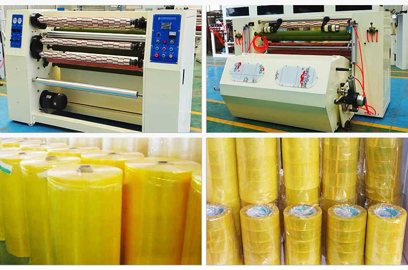 適用于BOPP膠帶成品透明之分條,制作各種規格的成品膠帶,從涂有膠水的大卷,連同其他三臺機器,紙管切割機,紙管 裝載機和復卷機制作一個完整的線。