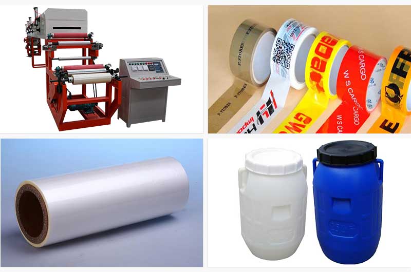 從原材料(BOPP薄膜,水性壓敏膠,紙芯)在同一臺(tái)機(jī)器上制作印刷,透明度和顏色不同尺寸的膠帶。